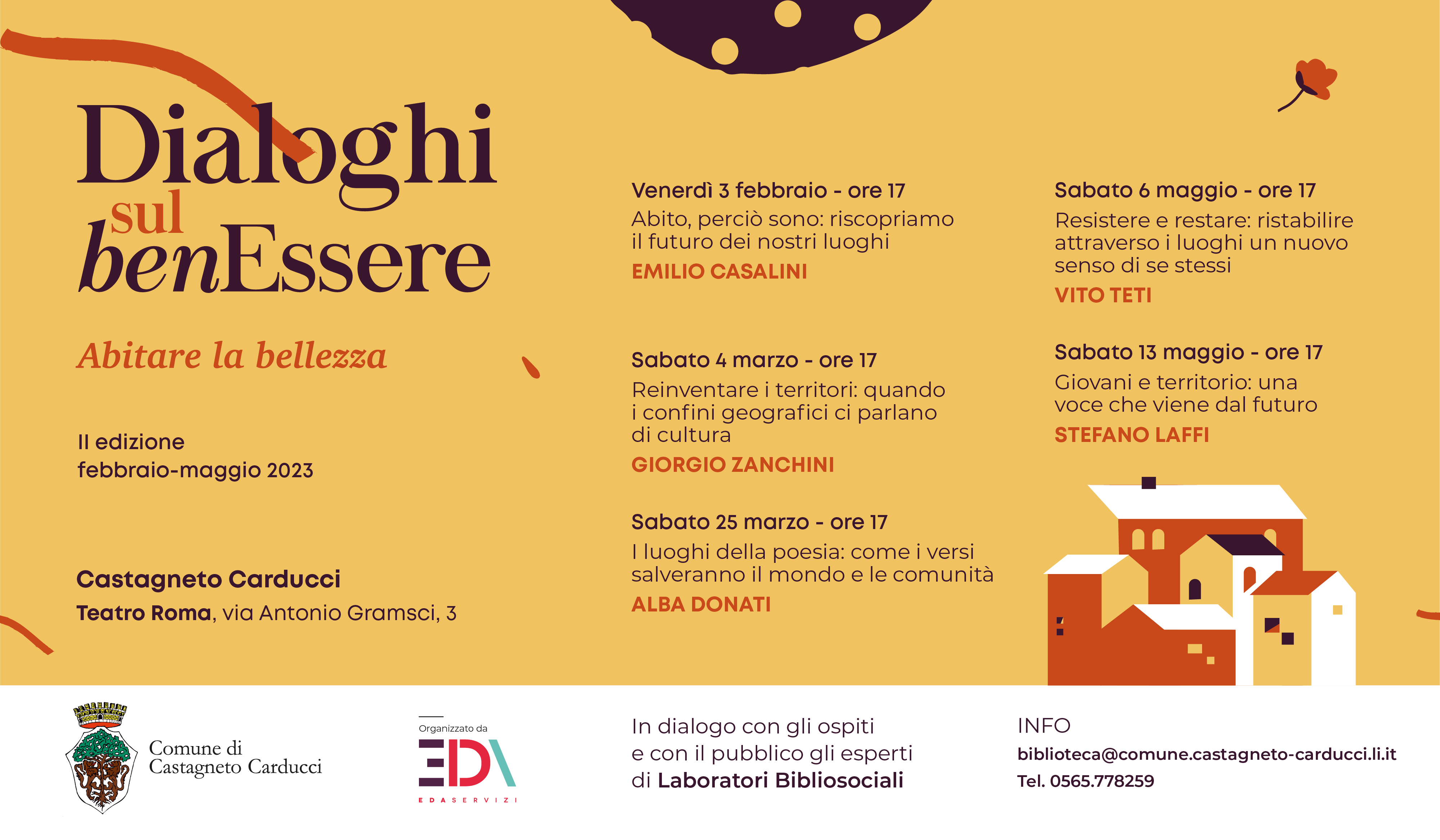 Riprende il 3 febbraio 2023 alle ore 17.00 presso il Teatro Roma a Castagneto Carducci la Rassegna Dialoghi sul Ben-Essere, promossa dal Comune di Castagneto Carducci, in collaborazione con EDA Servizi Impresa Sociale.