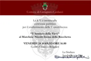 Al Marchese Nicolò Incisa della Rocchetta la 1^onorificenza “Il Sentiero delle Virtù” conferita dal Comune di Castagneto Carducci. Il conferimento…