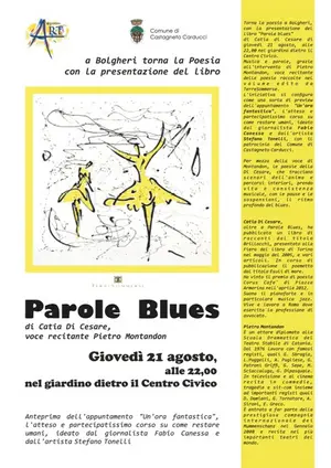 Presentazione del libro - PAROLE BLUES - di Catia di Cesare, voce recitante Piero Montandon, alle 22,00 nel giardino dietro il Centro Civico