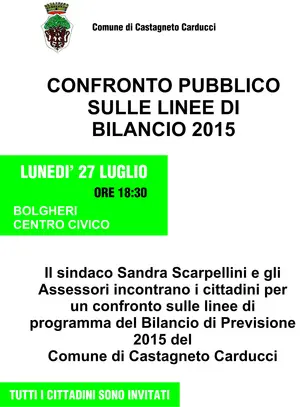 E' indetto per mercoledì 29 luglio alle ore 9:00 presso la Sala polivalente Falcone e Borsellino a Castagneto Carducci il Consiglio Comunale