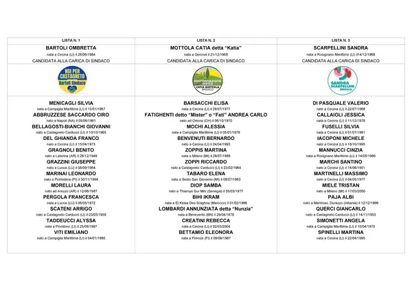 Candidati Sindaco e Lista Candidati Consiglieri collegata